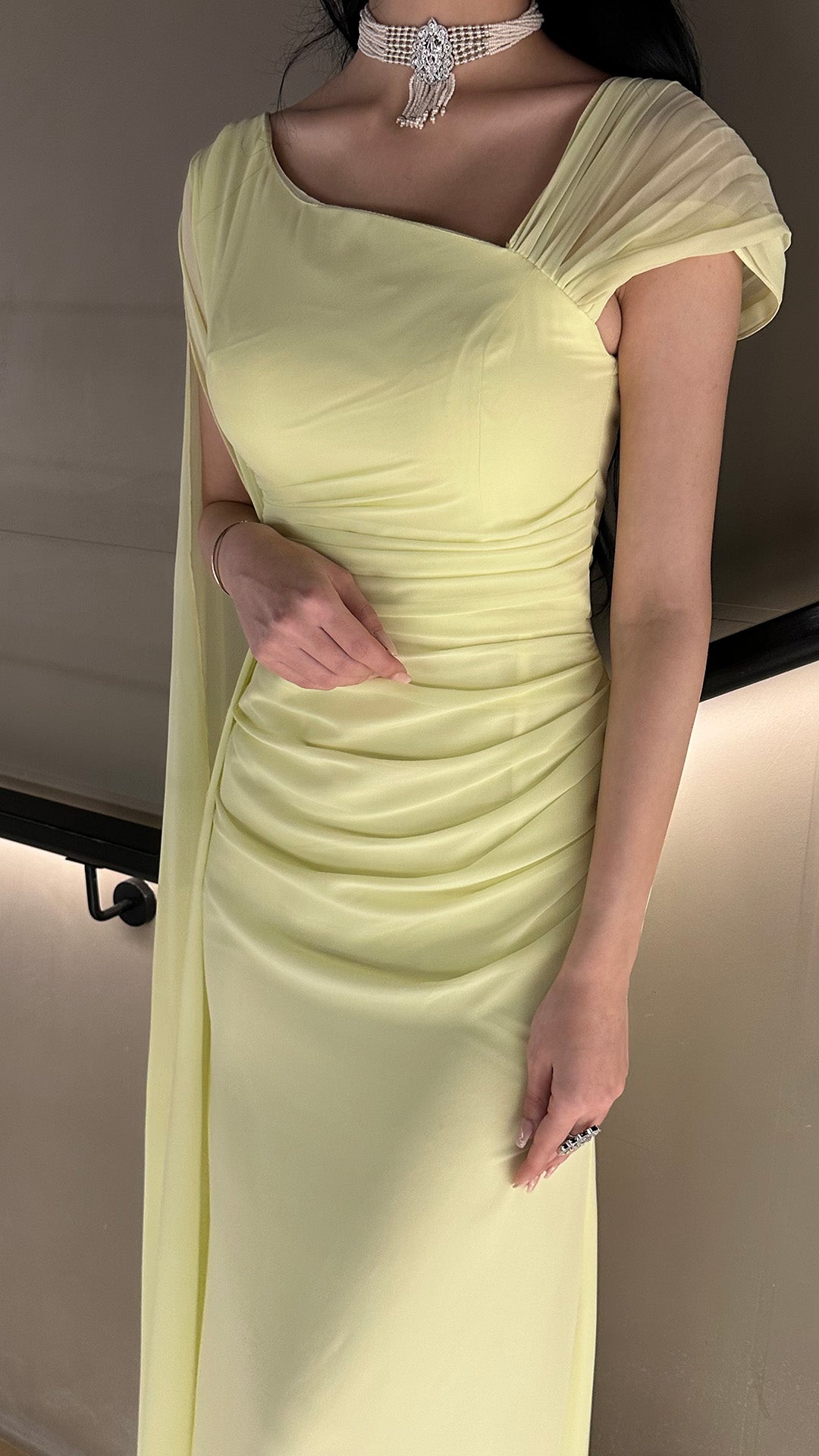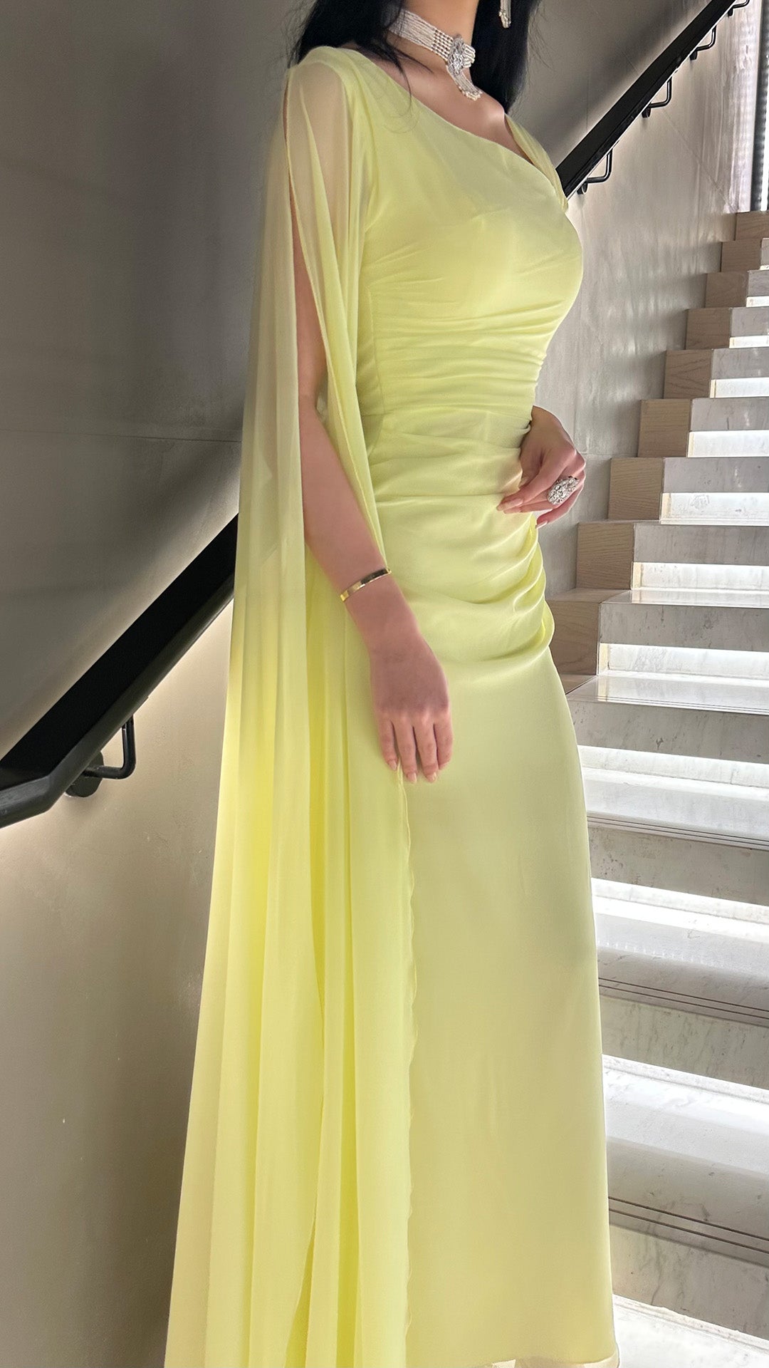This radiant yellow dress features a expertly tailored silhouette designed to flatter and enhance your figure. Its vibrant hue and refined cut combine to offer a perfect balance of elegance and feminine charm, making it an ideal choice for occasions where you want to stand out with confidence and style.