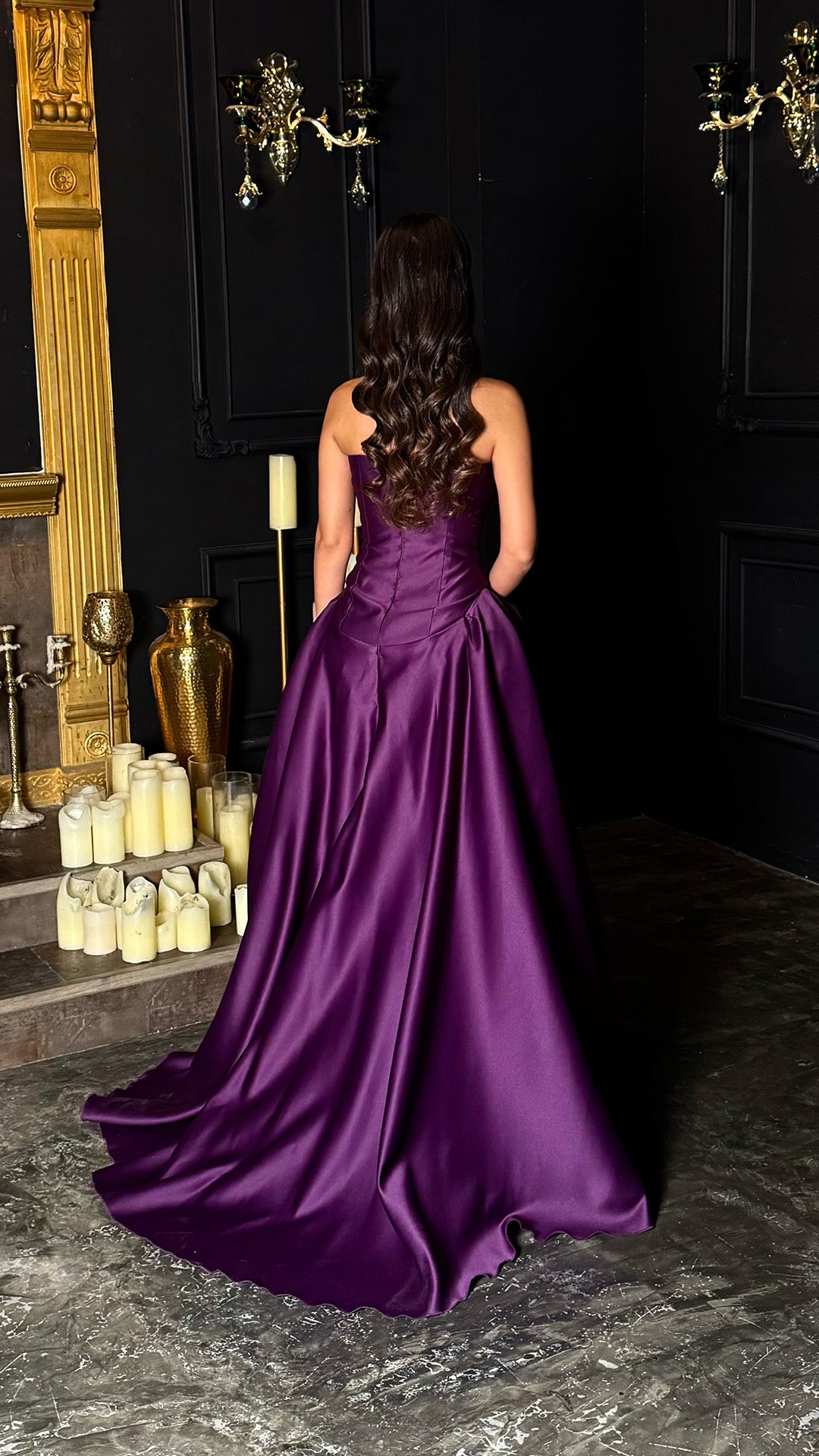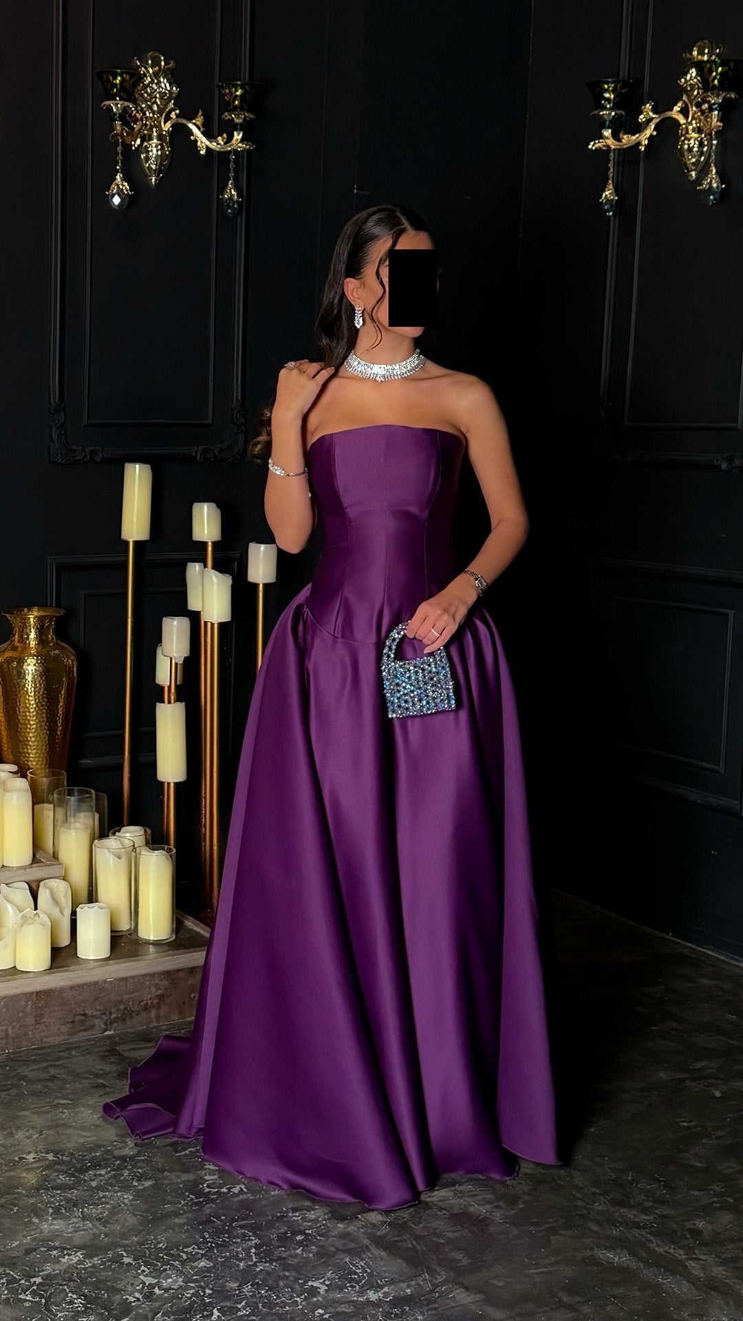 This luxury purple dress showcases a rich, vibrant hue that exudes sophistication. Designed with a flattering silhouette that accentuates the waist, it offers an elegant fit ideal for special occasions. Its refined color and shape combine to create a glamorous and stylish statement, perfect for those seeking timeless elegance.