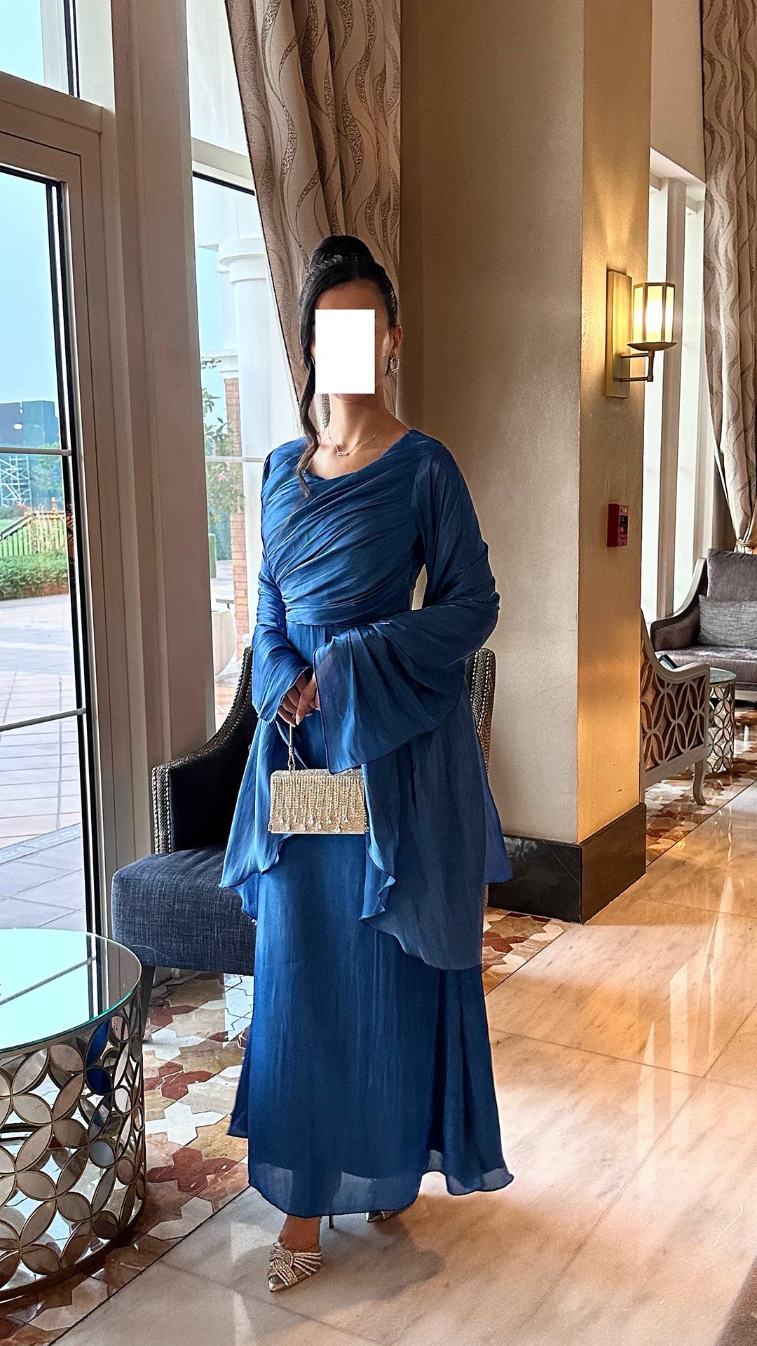 This Ocean dress in royal blue features delicate pleats and a flowing silhouette that embody timeless elegance. Crafted to enhance refined style, its graceful design offers both comfort and sophistication, making it an ideal choice for formal occasions or upscale events.