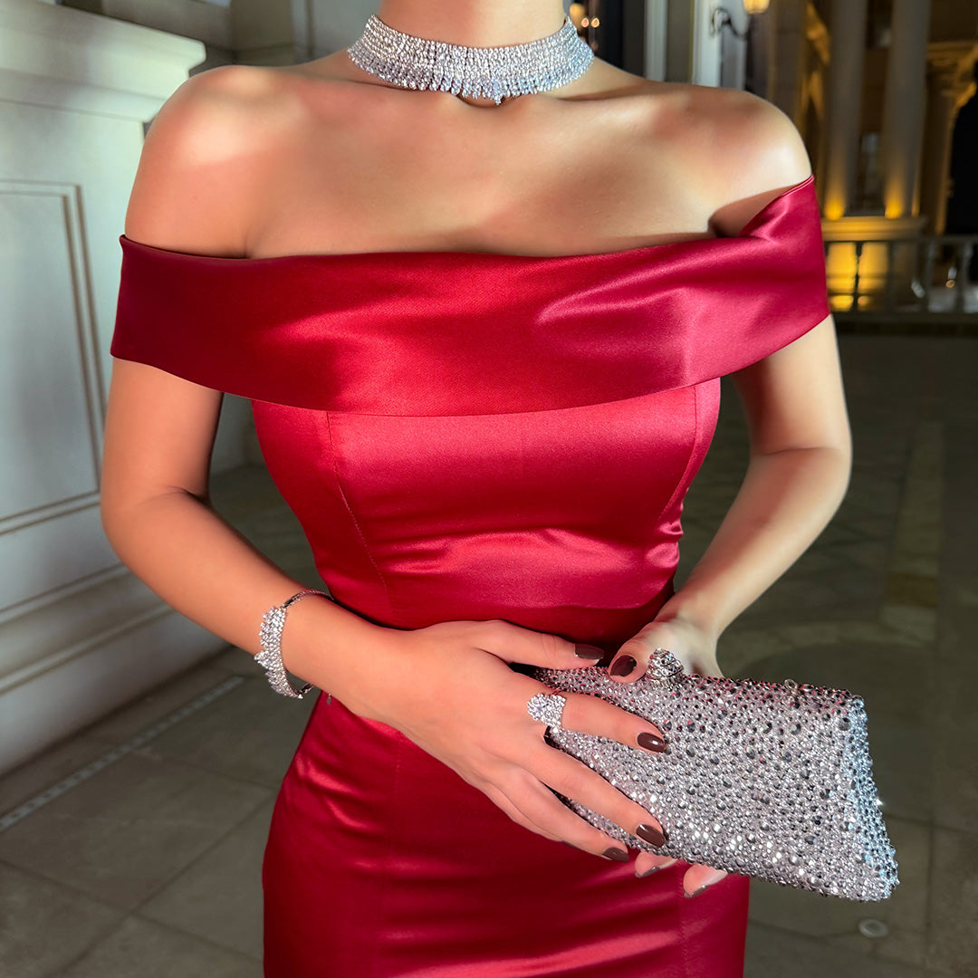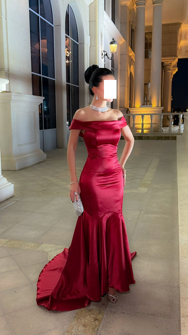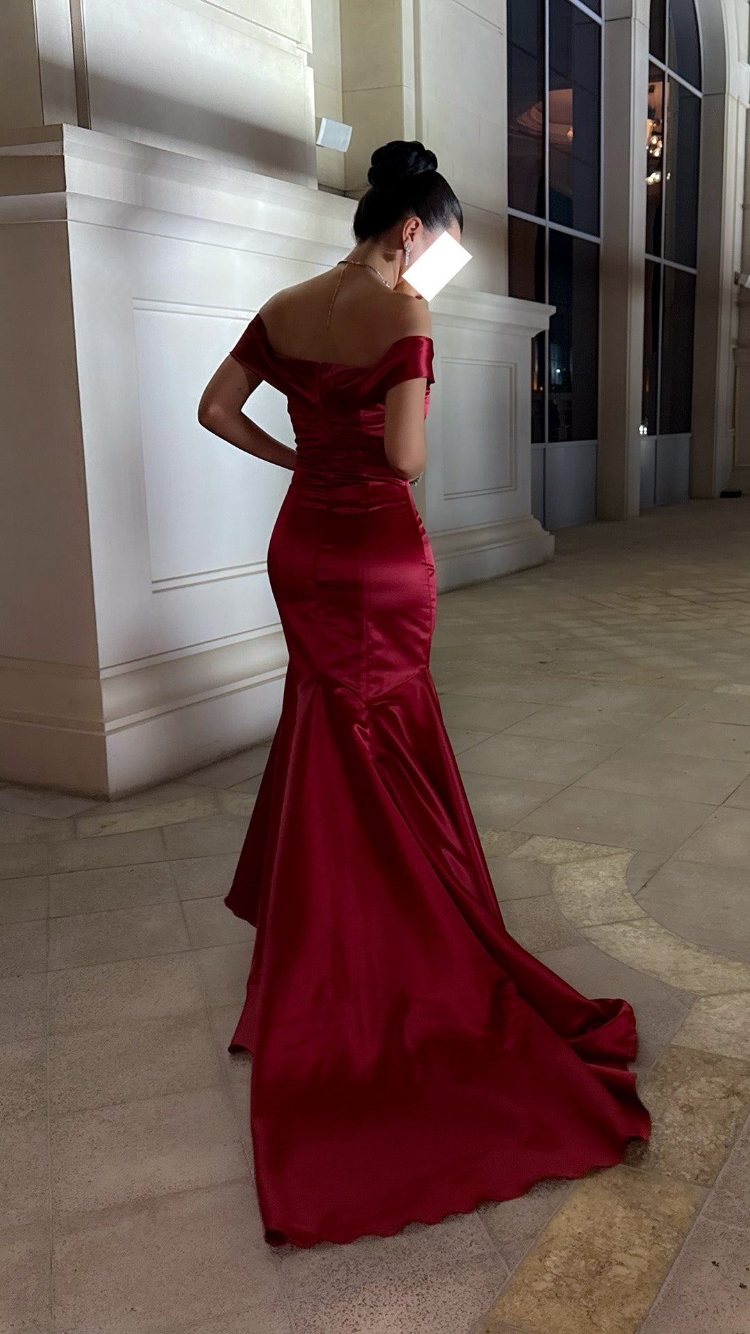 This elegant red dress, crafted from premium quality fabric, offers a graceful drape that enhances your natural silhouette. Its intricate detailing highlights curves, creating a flattering and refined look. The rich red hue adds sophistication, making it an ideal choice for formal events where style and elegance are paramount.